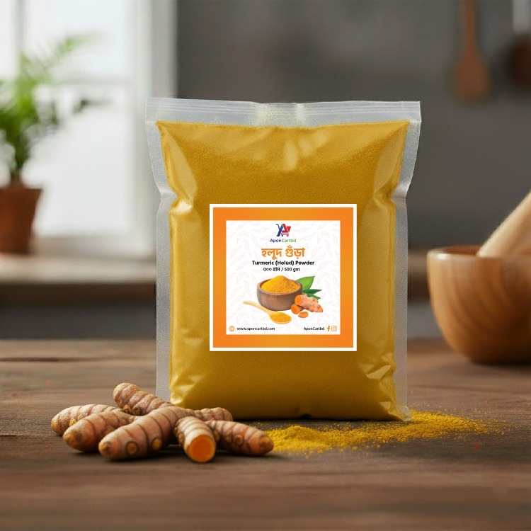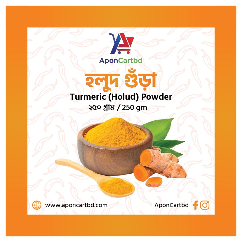 বাছাই করা তাজা হলুদ শুকিয়ে পাথরচালায় গুঁড়া করে তৈরি এই হলুদে রয়েছে প্রকৃত স্বাদ, ঘ্রাণ এবং পুষ্টিগুণ।